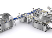 A 90° transfer system pairs the packages in the buffering belt of the vacuum chamber so that both seal bars can be utilized. If the products are not small enough to be paired, an auto-detect system will load the product as a single item.