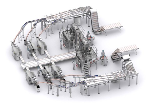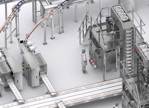 Fully automated solutions for the meat industry from the handling and loading of the product, to the final crate packing and palletizing.
