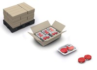 Each of the seven lines are equipped with robotized case packing cells that are capable of forming required mosaics of trays. They are supplied by the transport and distribution systems of carton boxes.
