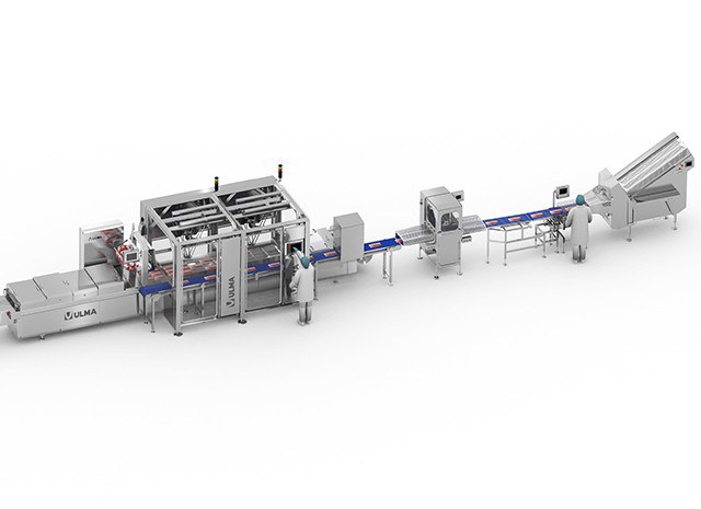 Complete automated packaging line for sliced meat products.