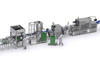 Complete line of fully automated packaging for the packaging of chicken breasts in traysealers.