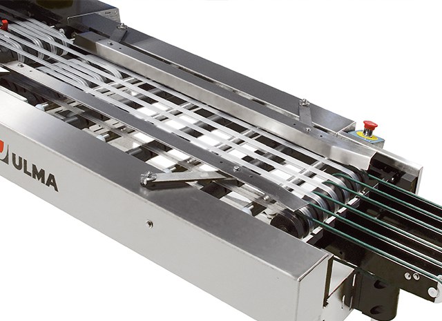- Gravity and motor-driven output belts: on line, 90º and 180º.