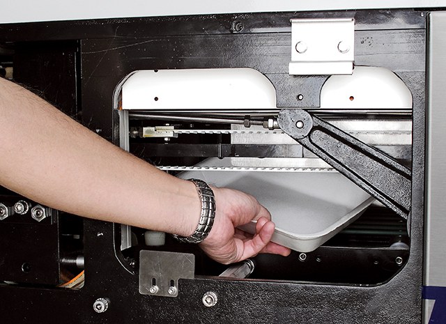 - Programmable speed according to tray / product.