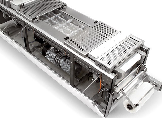 Hygienic thermoforming machine for flexible or rigid film with modified atmosphere (MAP) and vacuum options. The most suitable solution for upgrading manual packaging systems to automatic systems.