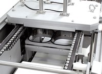Hygienic thermoforming machine for flexible or rigid film with modified atmosphere (MAP) and vacuum options. Medium-high performance level.
