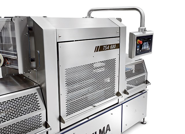 Automatic tray sealer for all type of trays and materials. Different printed top film materials can be used.
