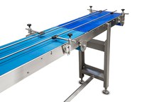 - Tray feeding and positioning by belt with drum-motor.