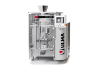 Vertical packaging machine (VFFS) which makes a three sealing pack. High performance intermitent vertical machine for medium-high speed applications.