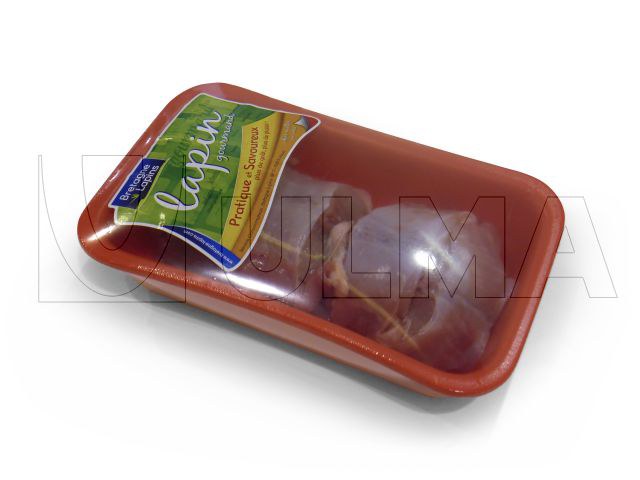 Rabbit cut-up packaging in flow pack wrapper (HFFS) in Modified Atmosphere (MAP) using BDF Shrink Barrier Film 1398_1.jpg FM 300 Horizontal Flow Wrapper (HFFS) that makes a totally hermetic three sealing pillow pack for fresh food in modified atmosphere (MAP). High performance level.