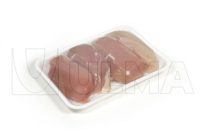 Chicken breast foam material trays packaging in tray sealing with SSF film