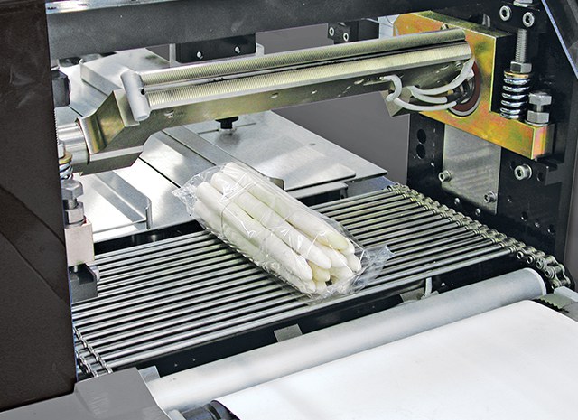 Tres pares de rodillos de soldadura y arrastre longitudinal del film.