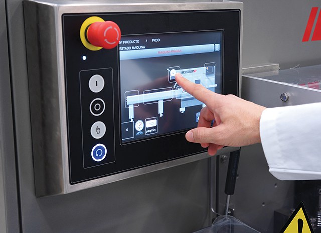 Ajuste de parámetros (longitud de formato, posición de pala, ...) desde pantalla táctil.
