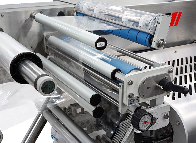 Máquina envolvedora Flow Pack horizontal (HFFS) de tres soldaduras que realiza un envase tipo almohadilla con nivel de prestaciones medio-alto.