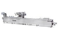 Máquina termoformadora para film flexible o rígido con posibilidad de envasado en atmósfera modificada (MAP) y envasado al vacío. Es la termoformadora de mayor nivel de prestaciones.