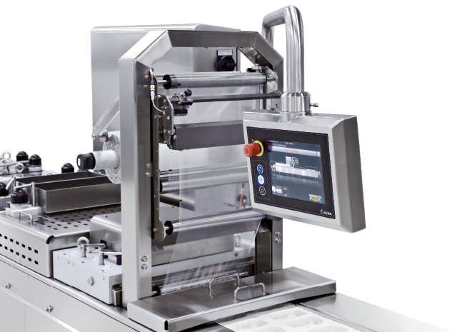 Máquina termoformadora higienizable para film flexible o rígido con posibilidad de envasado en atmósfera modificada (MAP) y envasado al vacío. Es la termoformadora higienizable de mayor nivel de prestaciones.