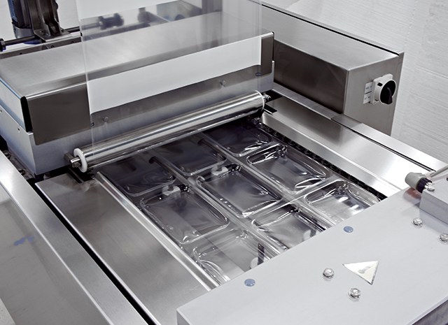 La TFS 80 es una máquina termoformadora para el envasado de productos alimenticios o médicos. El envase es creado en la máquina utilizando dos bobinas de film flexible.