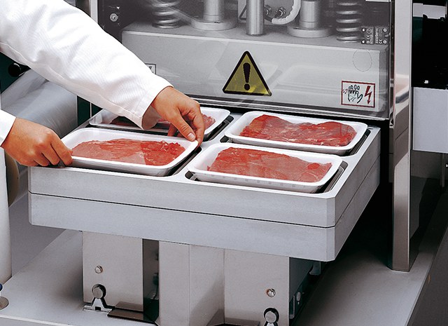 Máquina termoselladora para el envasado de productos alimenticios en atmósfera modificada. El modelo SMART se adapta a una amplia gama de films y bandejas de materiales simples, complejos y expandidos de acuerdo a los requerimientos de cada producto.