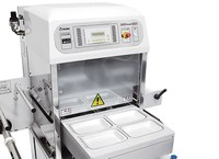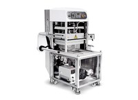 Hasta 8 ciclos/min en corte sellado y hasta 5 ciclos/min en MAP. Máquina termoselladora semiautomática pre-industrial para todo tipo de bandejas preformadas. Posibilidad de envasado en atmósfera modificada (MAP) y envasado al vacío. Sistema de transporte manual de bandejas con nivel de prestaciones medio-alto.