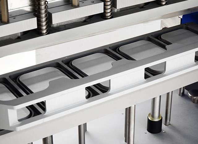 Termoselladora automática para todo tipo de bandejas prefabricadas de diferente composición. Como material de tapa se utilizan films termosellables que pueden ser impresos.