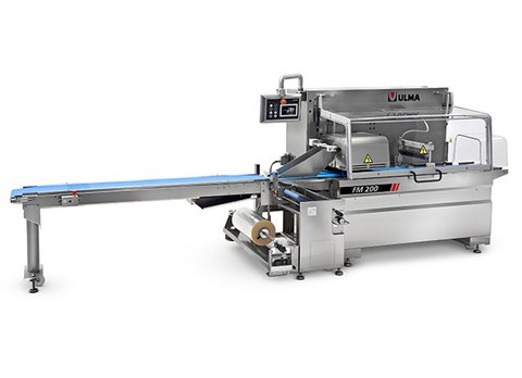 Envasado de pollo entero en flow pack (hffs) con film BOPP Envase sin bandeja 1874_1.jpg FM 200 Máquina envolvedora Flow Pack horizontal (HFFS) que realiza tres soldaduras totalmente herméticas obteniendo un envase tipo almohadilla para el envasado en atmósfera modificada (MAP) de alimentos frescos. Nivel de prestaciones medio alto.