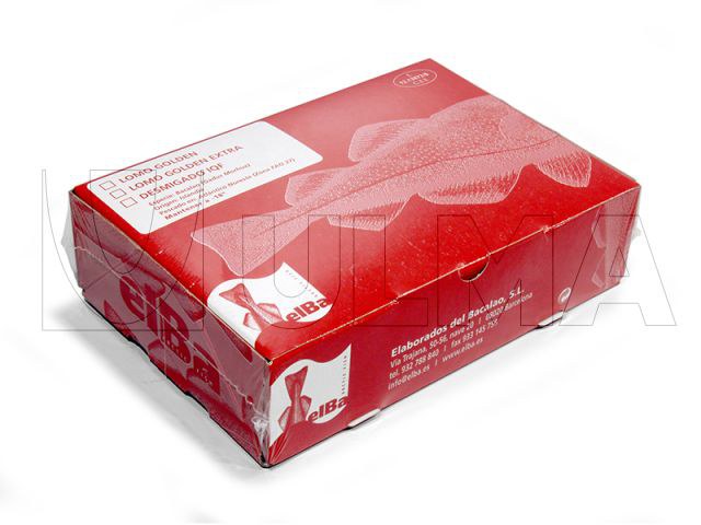 Envasado de lomos de bacalao en caja en retráctil de soldadura lateral