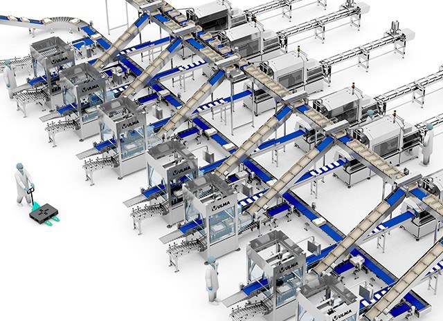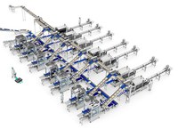 La solución completa de automatización de la planta de envasado incluye siete líneas de envasado de despiece de pollo.