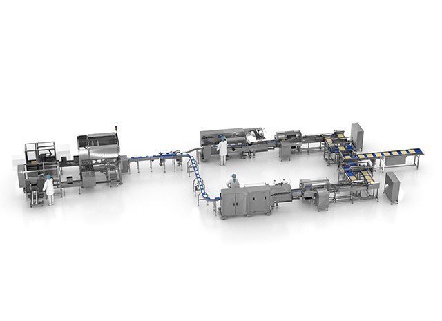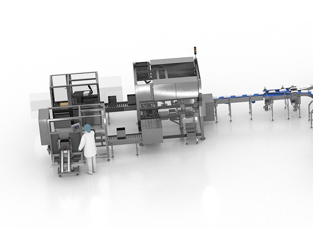 Línea completa para envasado primario de wafers y encajado automático 2 en 1 (top loading y side loading).